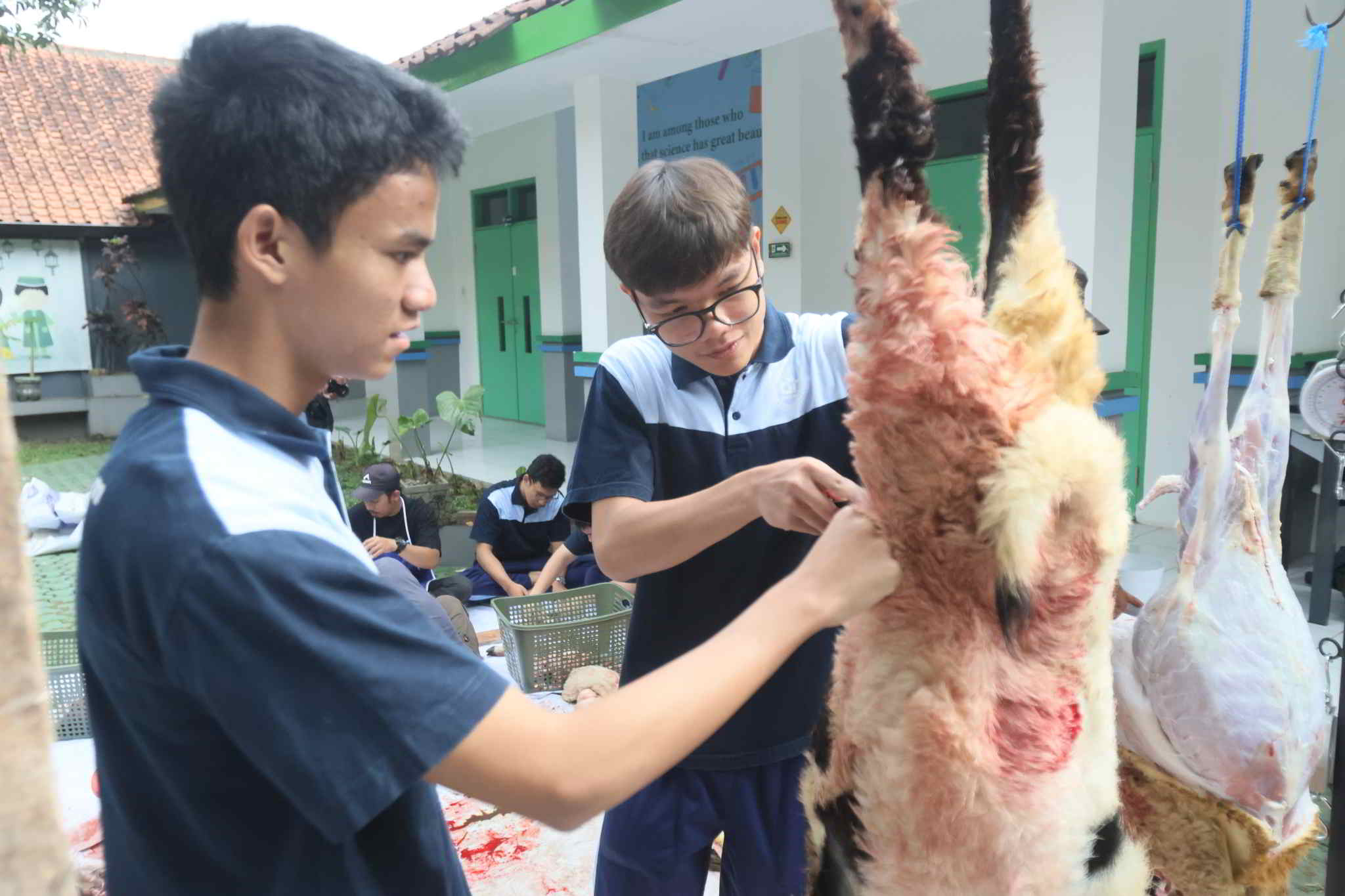 Uniknya, proses penyembelihan dilakukan langsung oleh siswa yang telah mempelajari tata cara kurban secara syar’i dan aman.